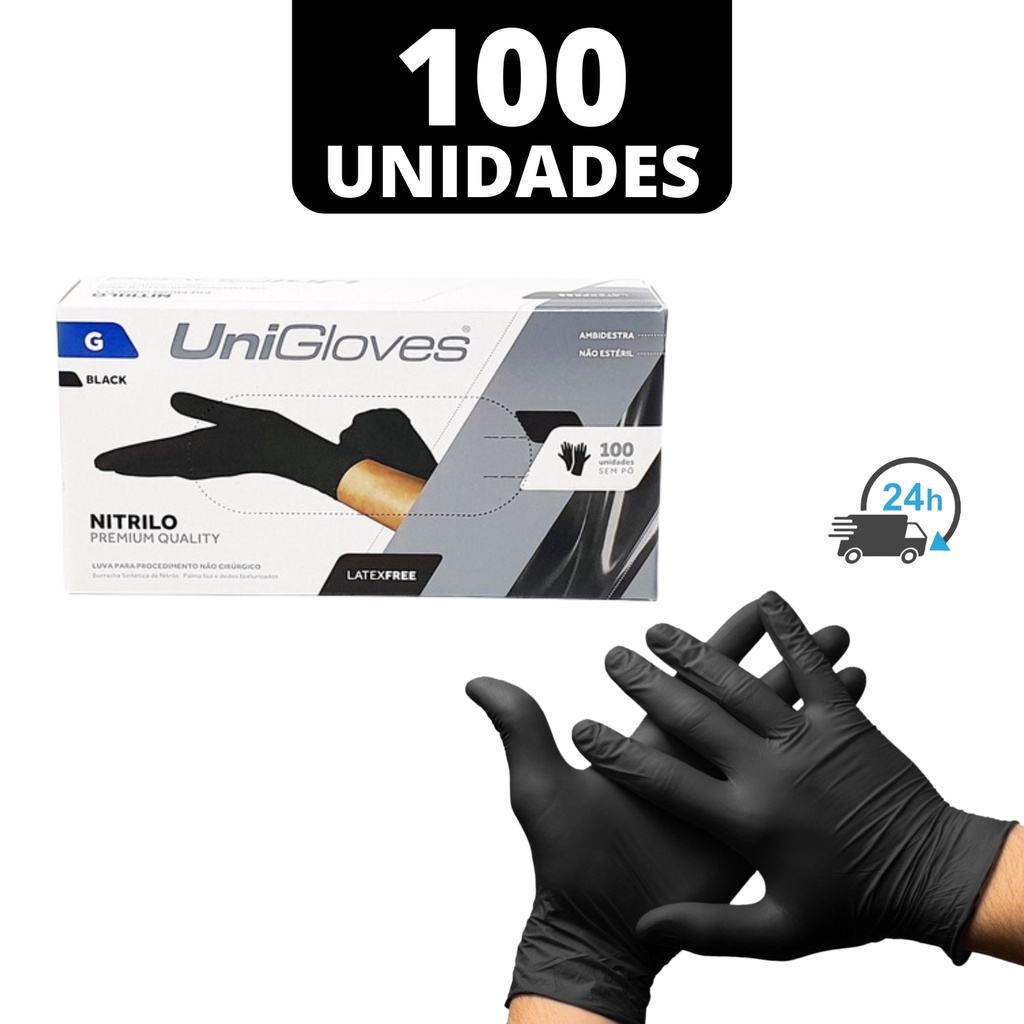 Luva Nitrílica Nitrílo Preta Descartável Sem Pó C/100 Unidades Anvisa