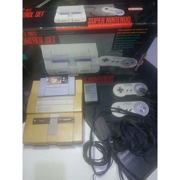 Super famicom com dois controles. As vezes o jogo demora pra pegar. Muito comum. Sem fonte