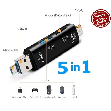 adaptador multifuncional 5 em 1, leitor OTG , USB 2.0, micro USB, tipo C