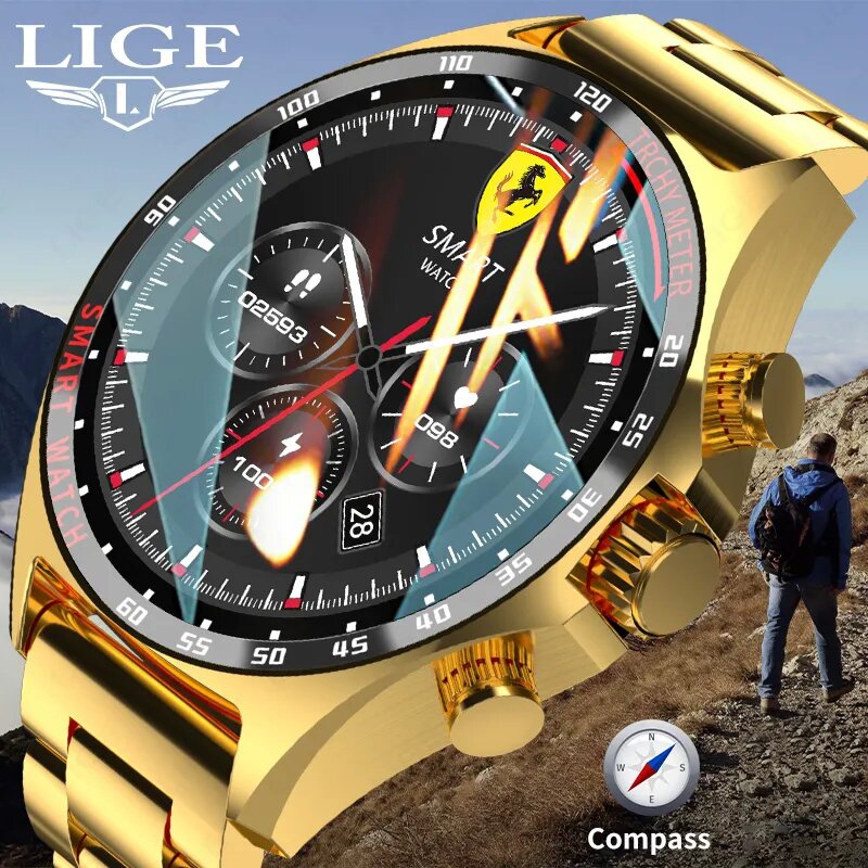 LIGE novo gps relogio inteligente masculino bússola ao ar livre esporte pulseira de fitness chamada relógio à prova dwaterproof água aço smartwatch para android e ios
