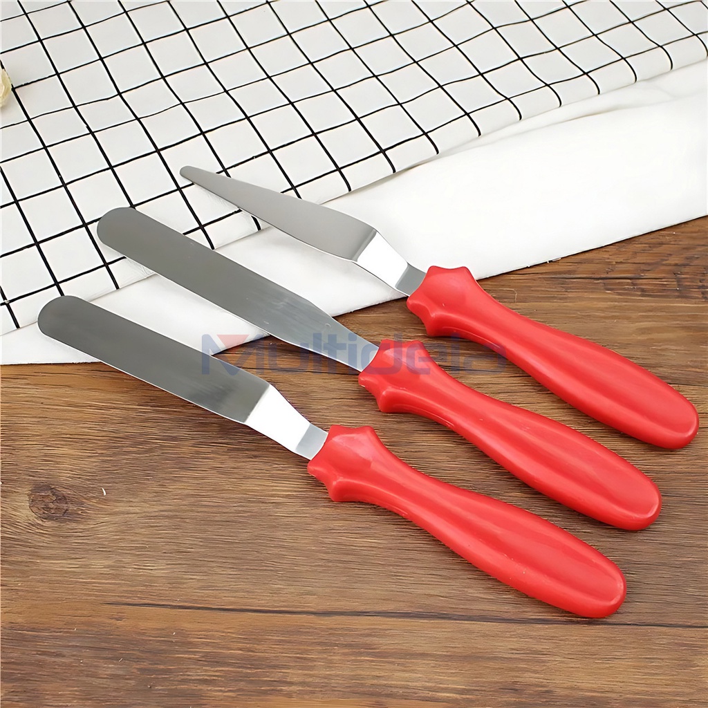Kit 3 Espátulas Confeiteiro Em Aço Inox Para Bolos Tortas Sobremesas Cozinha Decoração