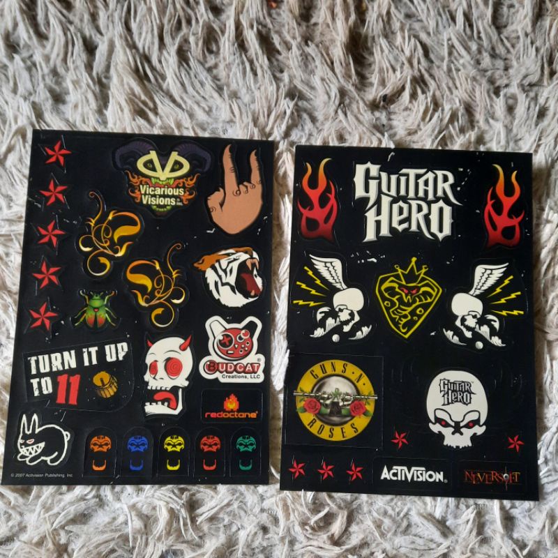 2 Cartelas de Adesivos Guitarra Guitar Hero 3 - Legends Of Rock