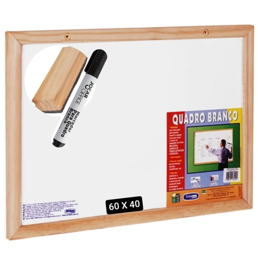 Quadro Lousa Escolar Branco Moldura em Madeira com Apagador e Marcador Souza