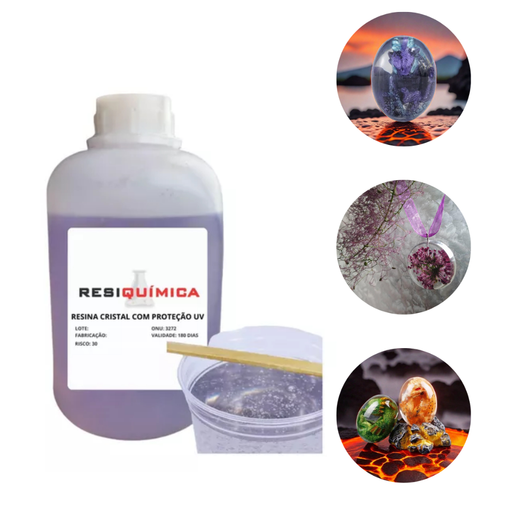 Resina Cristal Transparente Para Artesanatos e Hobby Não Amarela 1KG + 2 Catalisadores