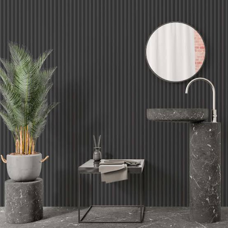 Papel de Parede 3D Ripado Cinza Escuro 5 METROS x 45CM Adesivo Autocolante para Sala, Quarto