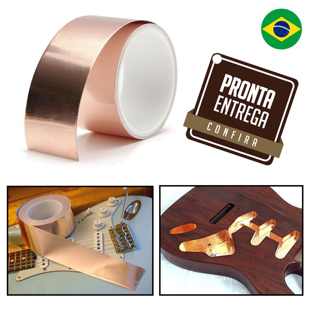 Fita Cobre Blindagem Adesivo 1m X 5cm Guitarra Baixo Uso Geral Já no Brasil Pronta Entrega