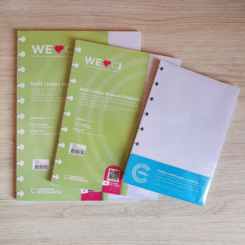 Refil Pautado Linhas Brancas 90g ou 120g (G, M, A5, Inteligine) | CADERNO INTELIGENTE
