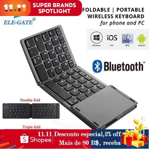 Portátil Mini Teclado Dobrável Sem Fio Bluetooth Touchpad Para ipad Phone Tablet