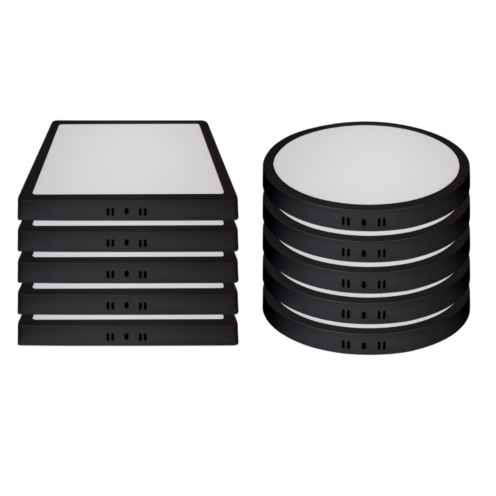 5 Luminária Plafon Preto 18W Painel LED Sobrepor NY Quadrado Redondo Frio Quente Neutro 6500K 3000K 4000K