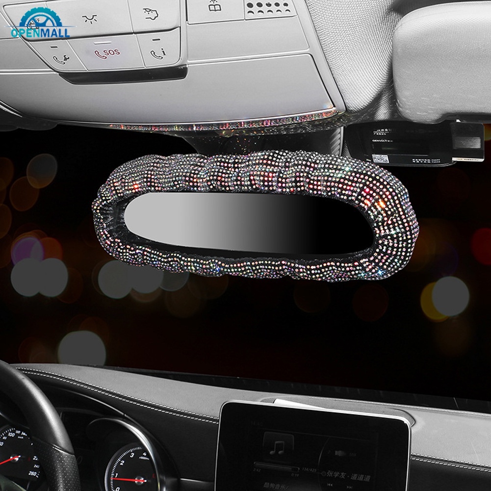 OM Carro Vista Traseira Bling Rhinestone Espelho Encantador Cobertura Do Com Diamantes De Cristal Glitter Elástico