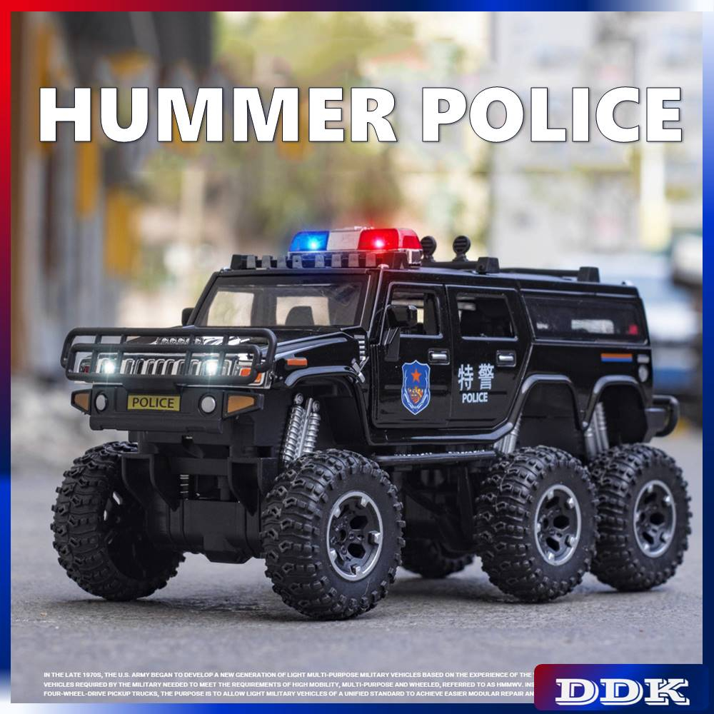 1 : 32 Hummer Police Diecast Model Car Alloy Toy Metal Sound & Light Pull Back Truck Collection Veículos Presentes Para