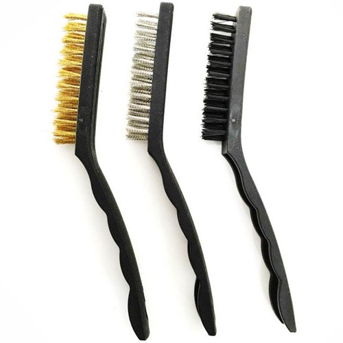 Kit com 3 Escovas Aço Pequenas para Limpeza Pesada de Peças (1 Aço, 1 Latão e 1 Nylon) Tira Ferrugem