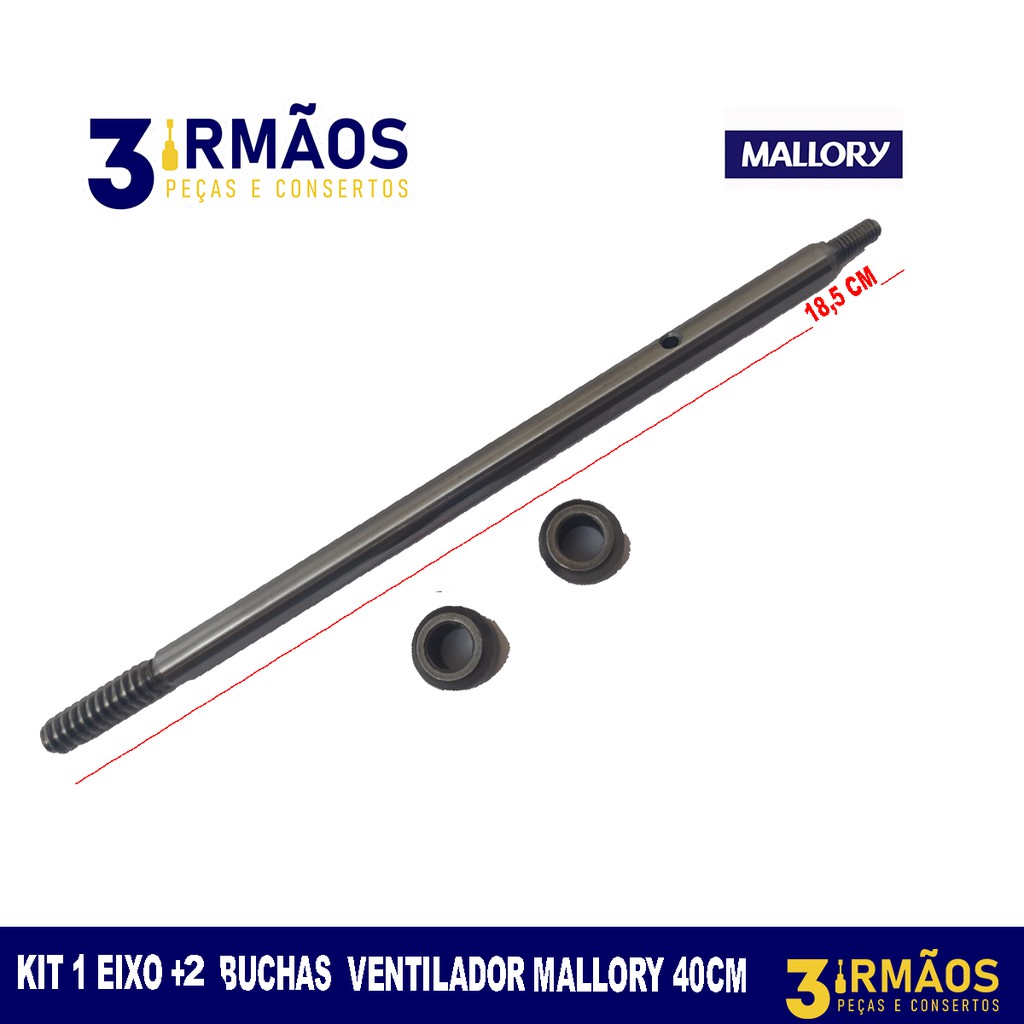 Kit com Eixo e 2 Buchas Motor Ventilador Britânia / Philco 40 cm Meia Lua 20,5 cm Comprimento - Importado