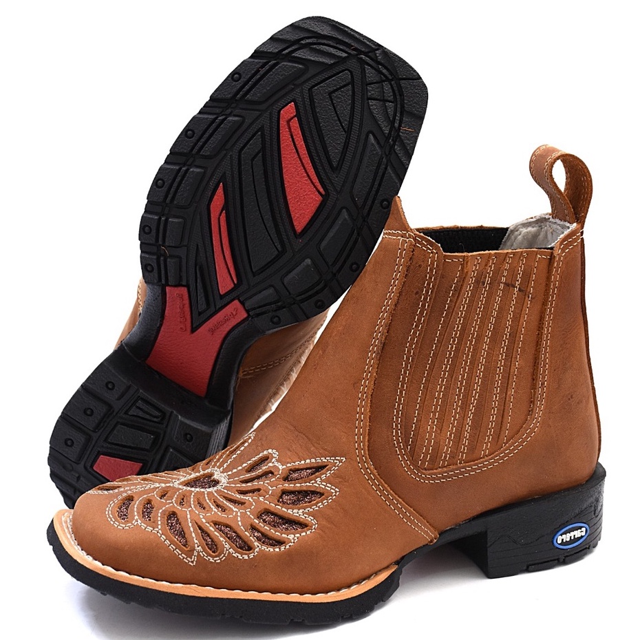 Bota Botina Feminina Em Couro Legitimo Country Cano Curto