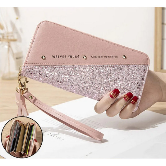 Bolsa de Mão Carteira Feminina Couro Ecológico Duplo Zíper Porta Moedas e Porta Cartões