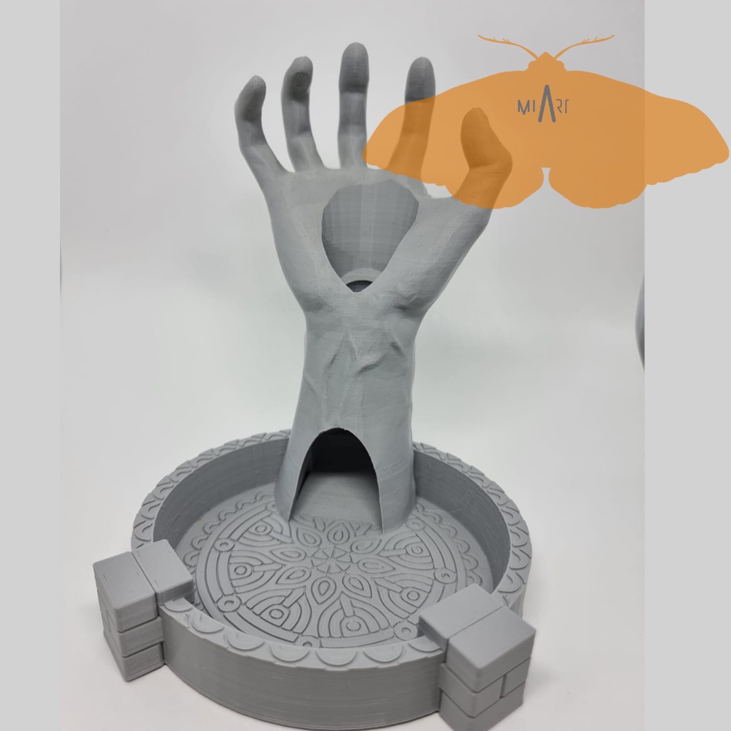 Torre para jogar dados de jogos de rpg e tabuleiro em formato de mão impressão 3d dice tower
