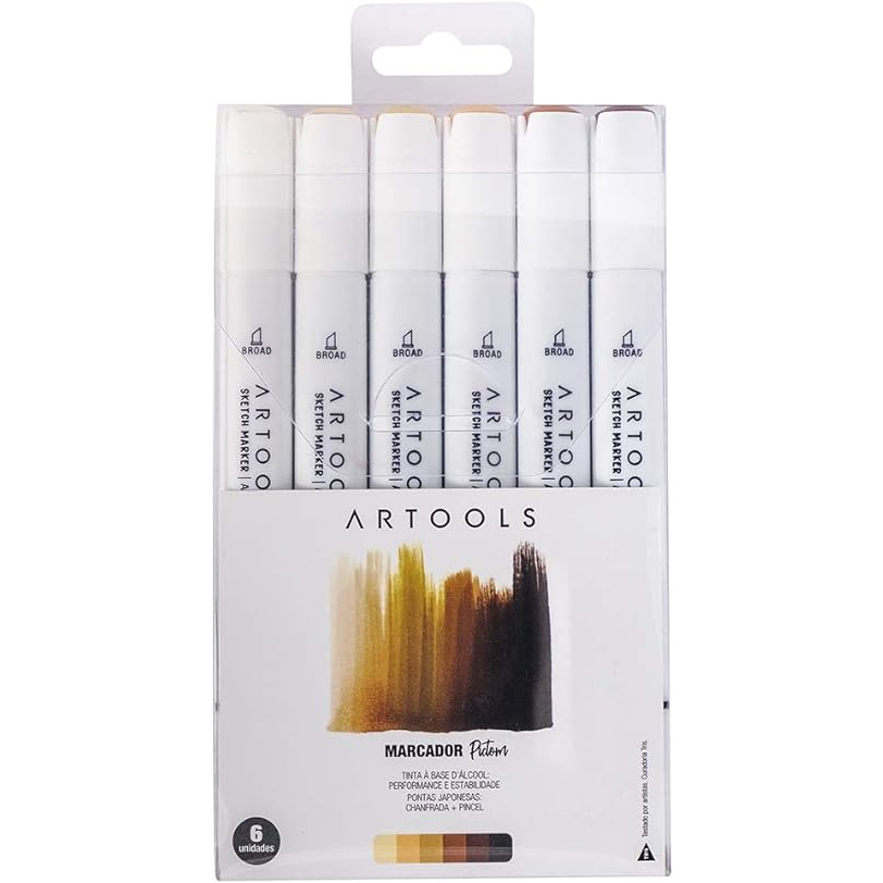 Caneta Marcador Artools Pictom Ponta Dupla Tons de Pele com 6 unidades
