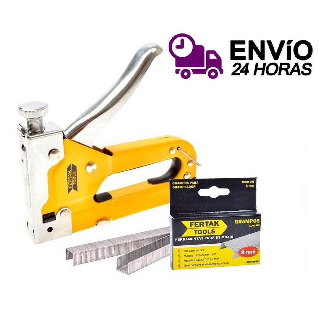 Grampeador Tapeceiro 4-8 mm Fertak + 2200 Grampos Ferramentas Profissional