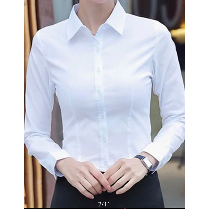 camisete branca camisa social feminina manga longa Gabardine passa fácil direto da fábrica