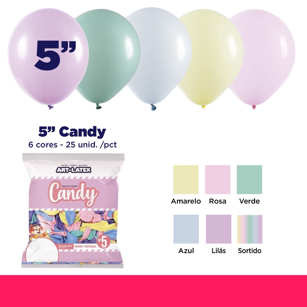 Balão Candy 5" Diversas Cores – 25 Unid – Art Latex