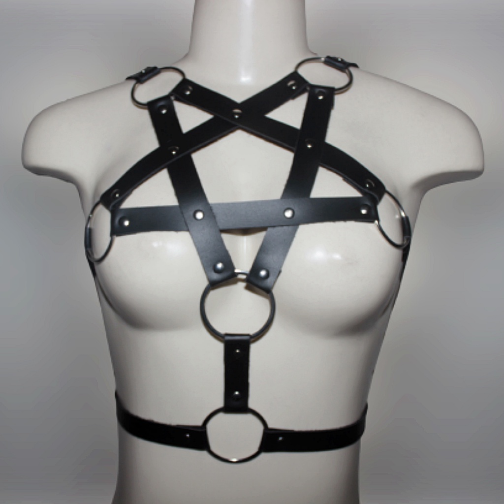 Harness Arreio Pentagrama Gótico Estrela Arreio Couro Sintético