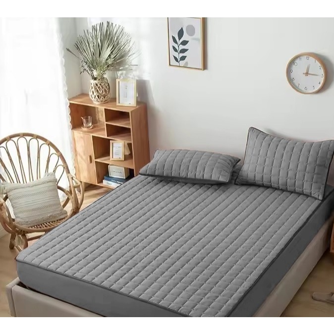 Kit Capa Protetor de Colchão Impermeável Matelado + Saia Box Matelado com Viés + Porta Travesseiro para Cama Box Solteiro, Casal, Queen, King Envio Imediato