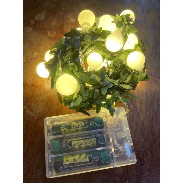Cordão De LEDs Folhas E Bolinhas Brancas Artificiais Para Decoração 3M/20LEDs