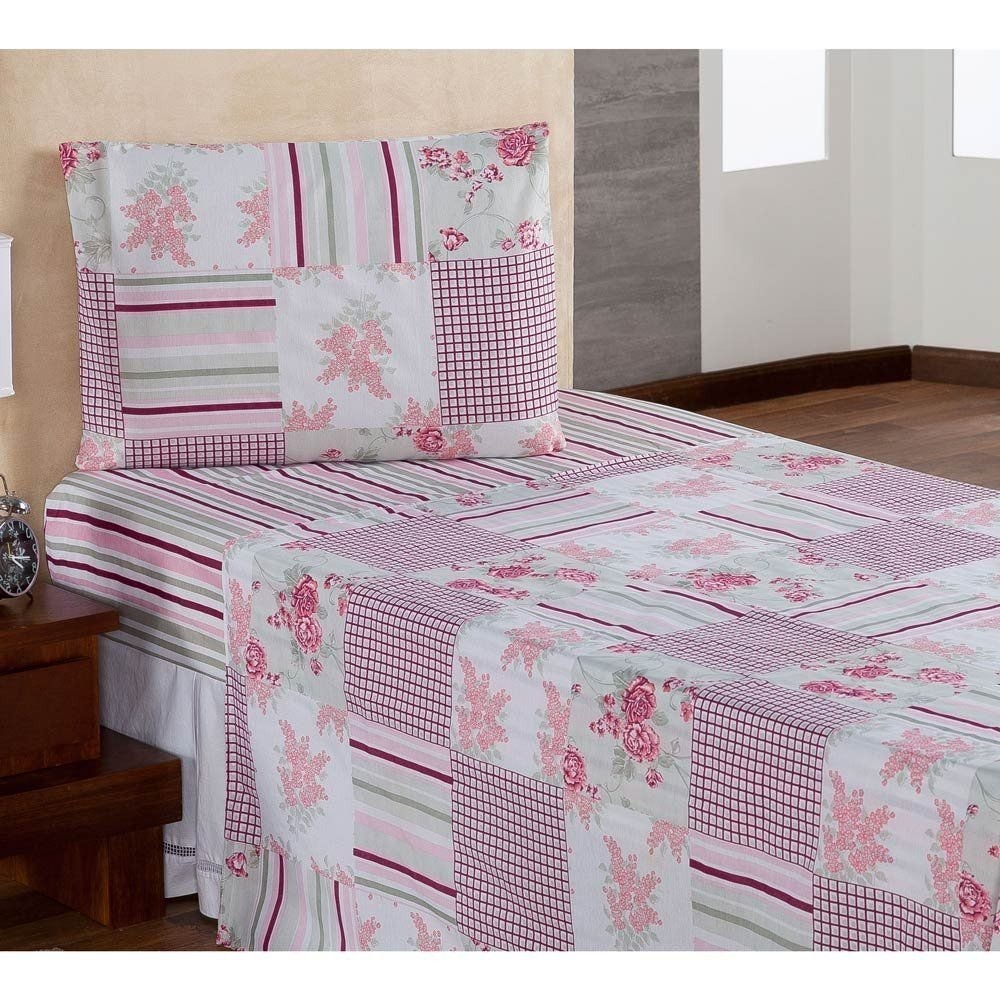 Jogo de Cama Lençol Solteiro 3 peças 100% Algodão Estampado Elástico