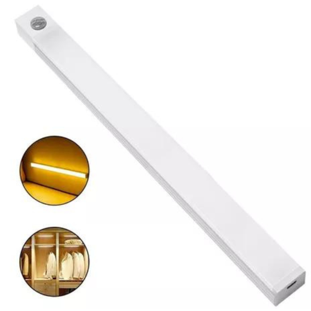 luminaria barra led com sensor de presença grande 50cm luz quente recarregavel usb spot armarios cozinha guarda roupa quarto sala bateria longa duração