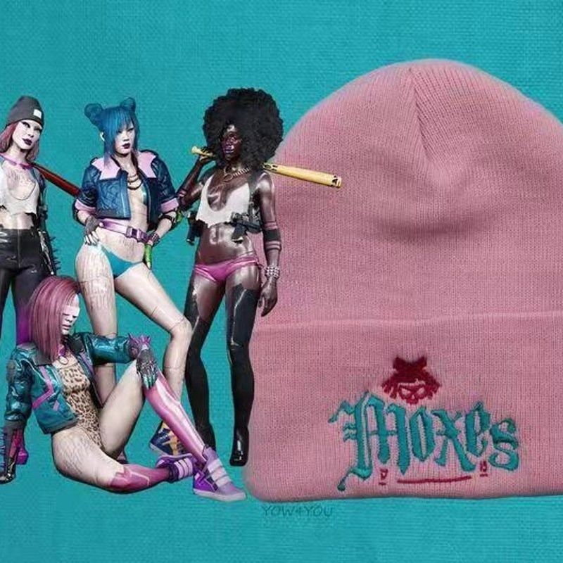 Spot Cartoon Game Cyberpunk 2077 Outono Inverno Capuz de lã Moxes bordado de tricô estudantes com cabeça de cabeça maré de chapéu frio