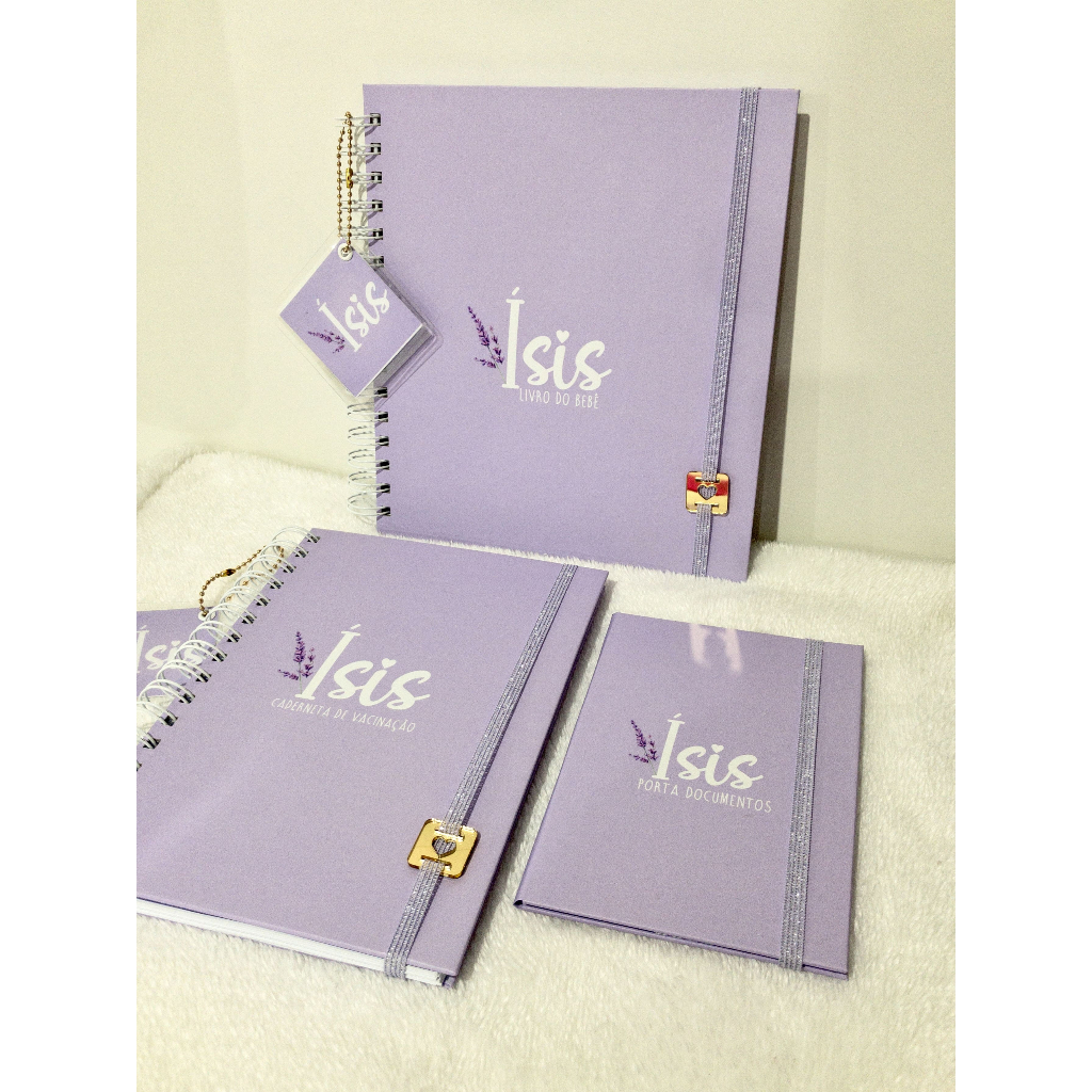 CADERNETA DE VACINA + PORTA DOCUMENTOS + LIVRO DO BEBE - CLEAN - LILAS - MENINA - PERSONALIZADA