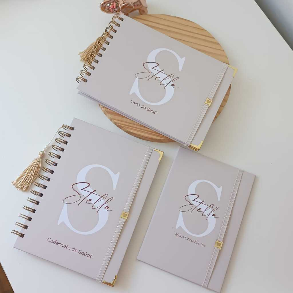 Kit Caderneta de saúde e vacinas + Livro do bebê + Porta Documentos A6 Premium personalizado com nome Vários Temas