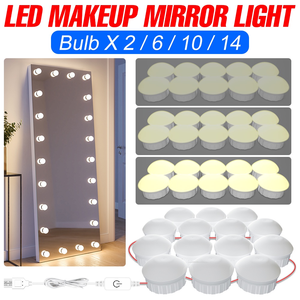 Luminária Para Espelho 14 Bulbo Luz De LED Para Espelho Camarim Luz 12V Espelho Maquiagem Lâmpada Iluminação Do Banheiro USB Brilho ajustável Luz Noturna