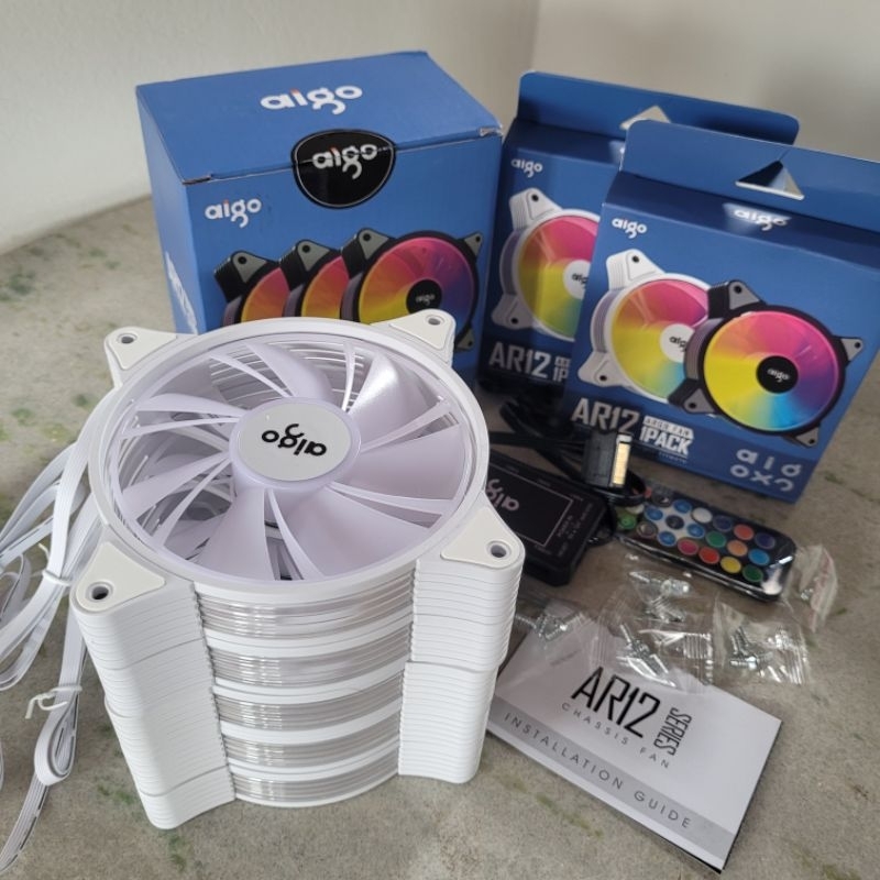 Kit 6 Fans Aigo AR12 Pro 120mm ARGB + Controladora Aigo APC1 + Controle Remoto