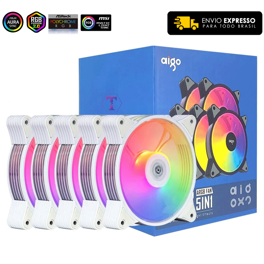 KIT 5 UNID COOLER AR12 AIGO ARGB 120MM MENOR PREÇO CONEXÃO 6PIN COM CONTROLADORA
