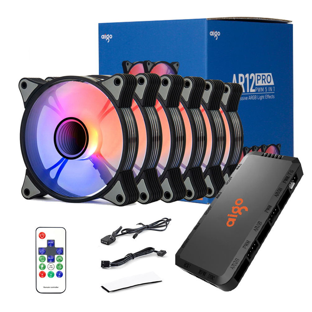 Kit com 5 Fans Argb Aigo Ar12 Pro + Controladora, Coolers Rgb *Novos / Pc Gamer Computador Gabinete Desktop Cooler Fan DarkFlash Pwm 5v