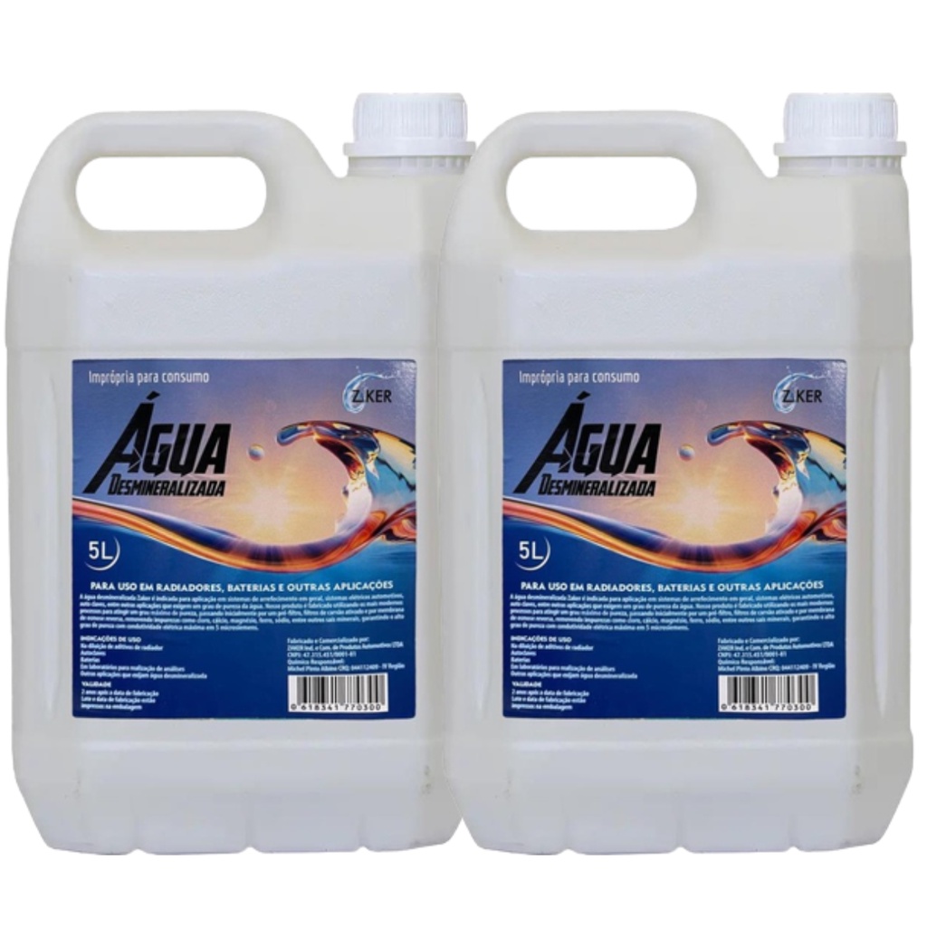 Kit 2 Galões 5 Litros Agua Desmineralizada Para Radiador E Bateria