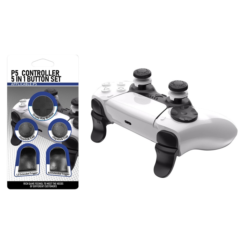 Botão Extensor do L2, R2 P/ Controle PS5 Par de Gatilho Alongador + 2 Grips Controle Ps5