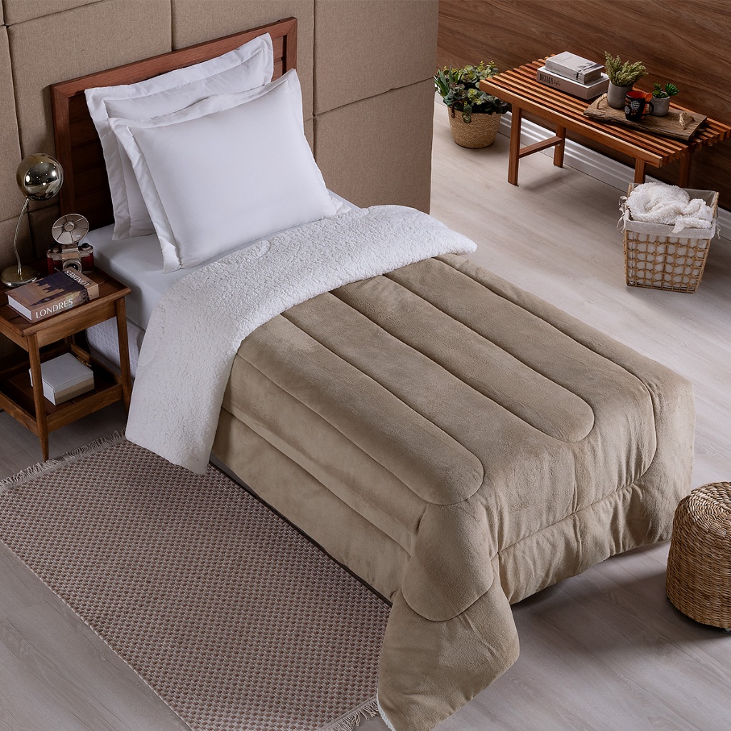 Edredom Coberdrom Cama Solteiro Dupla Face c/ Sherpa e Manta