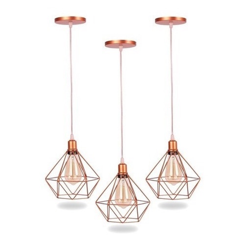 Kit 3 Pendente Aramado Diamante Luminária Lustre Luxo Pequeno Teto Retrô Agp Ilumini Industrial