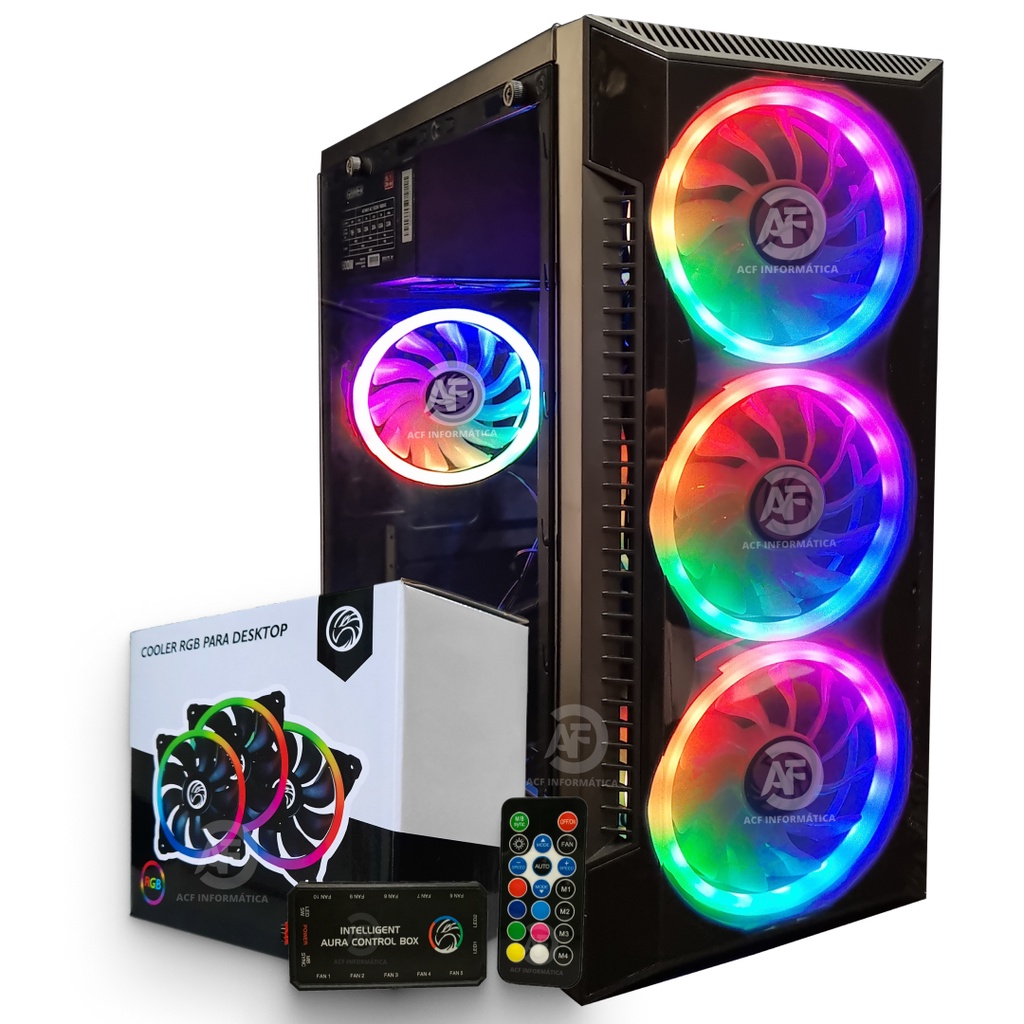 Gabinete Gamer Bpc-3147 C/ Lateral de Vidro + Kit 3 Cooler Fan Argb Led Duplo