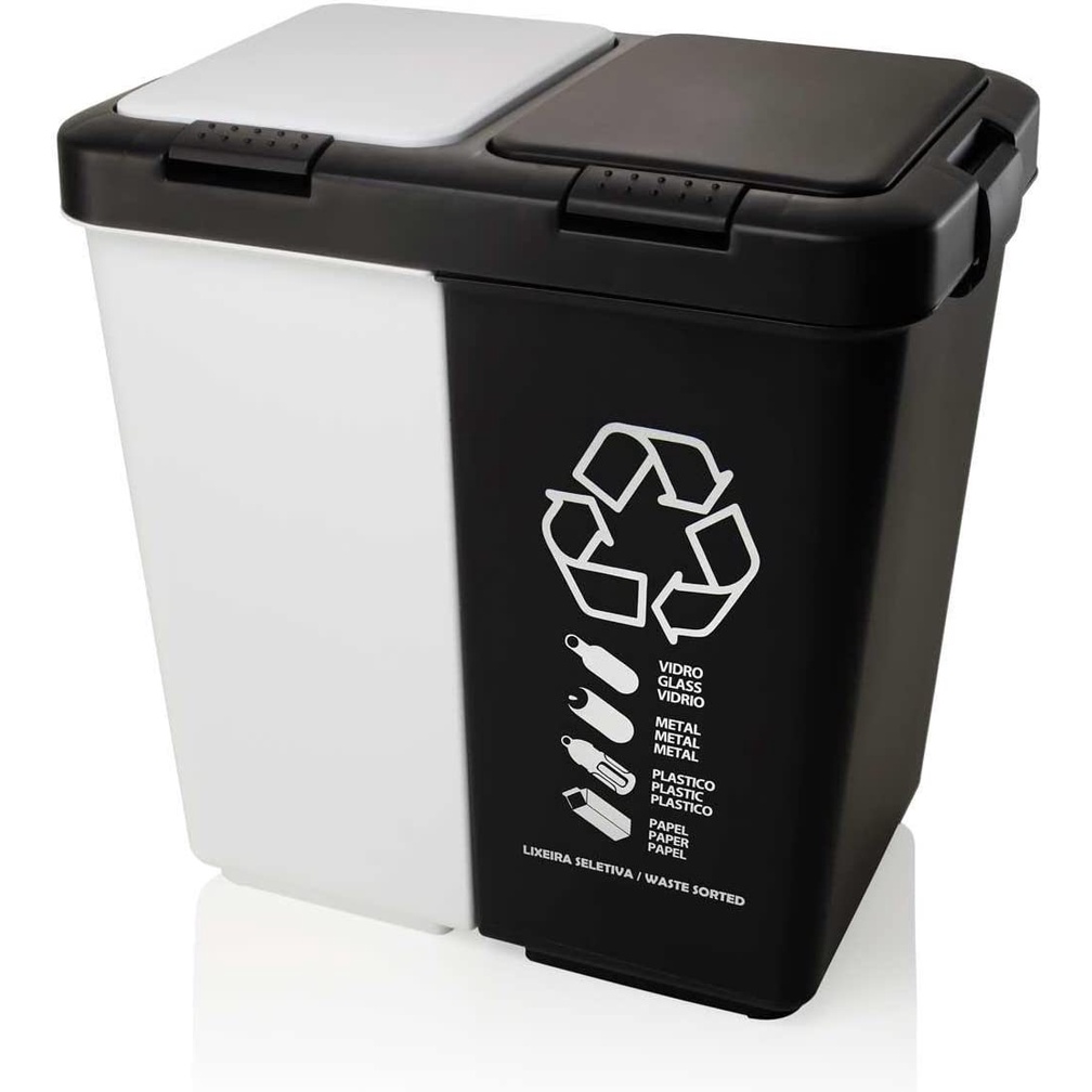 Lixeira Dupla Grande 40L ou 20L Lixo Seletivo e Orgânico Com Tampa em Plástico Resistente Preta e Branca 2 em 1 Casa Cozinha Decoração Reciclagem Alta Capacidade -Ou-