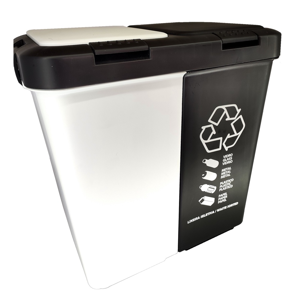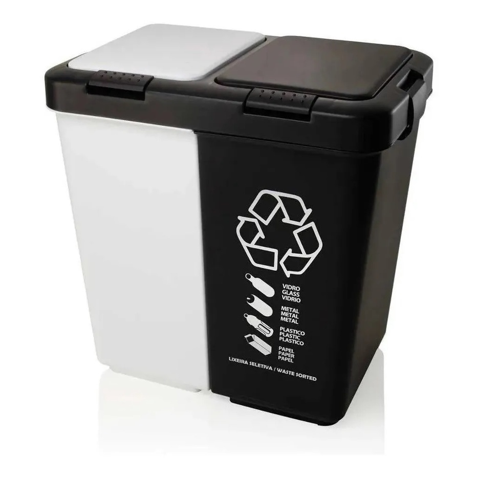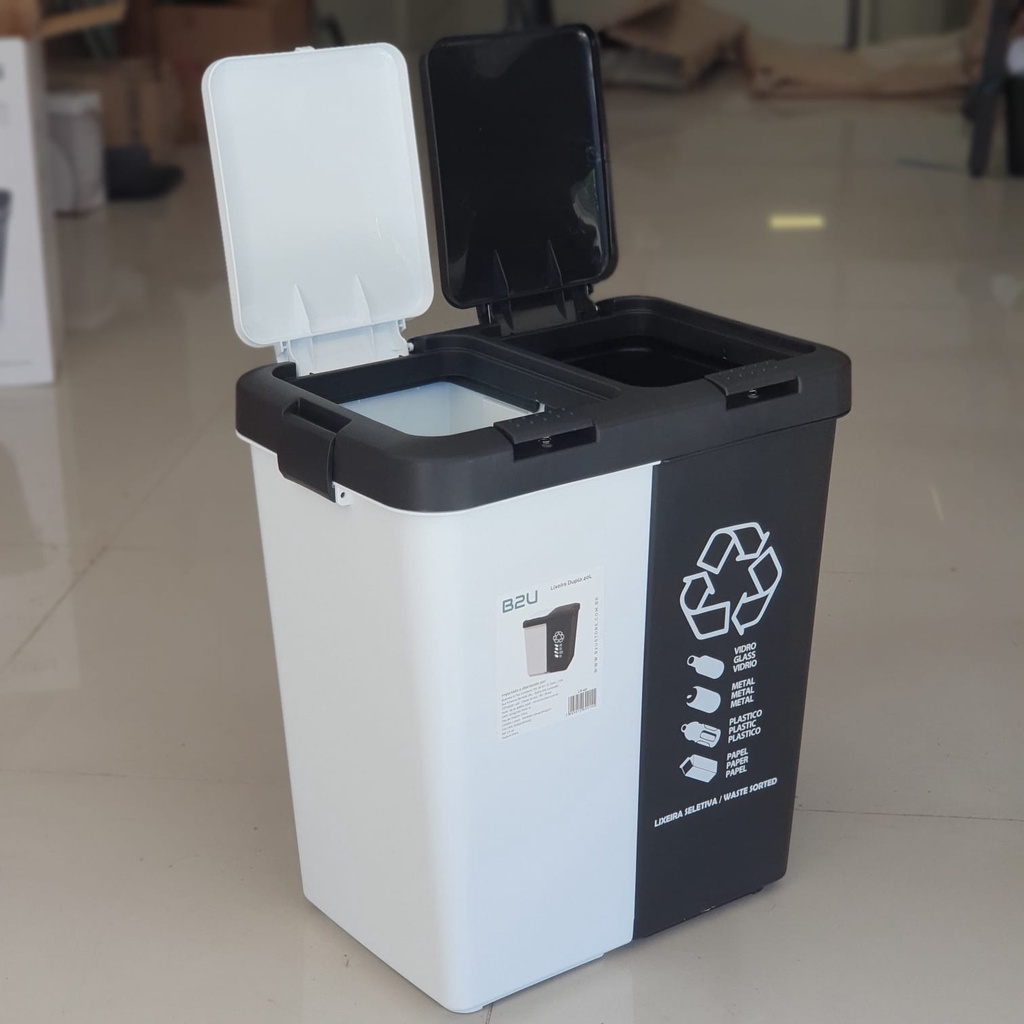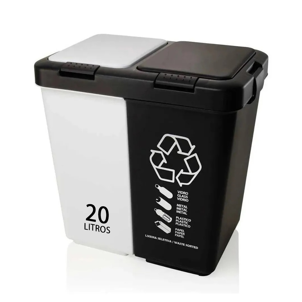 Lixeira Dupla 20 litros plástica com tampa branca e preto seletivo orgânico lixo separado