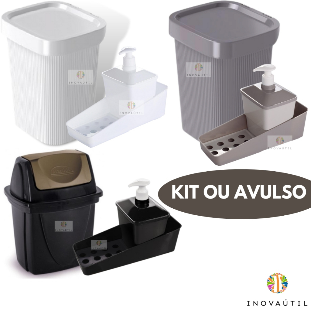 Kit Pia Cozinha Lixeira e Dispenser Porta Detergente 3 em 1 Disponível Para Kit ou Peça Avulsa