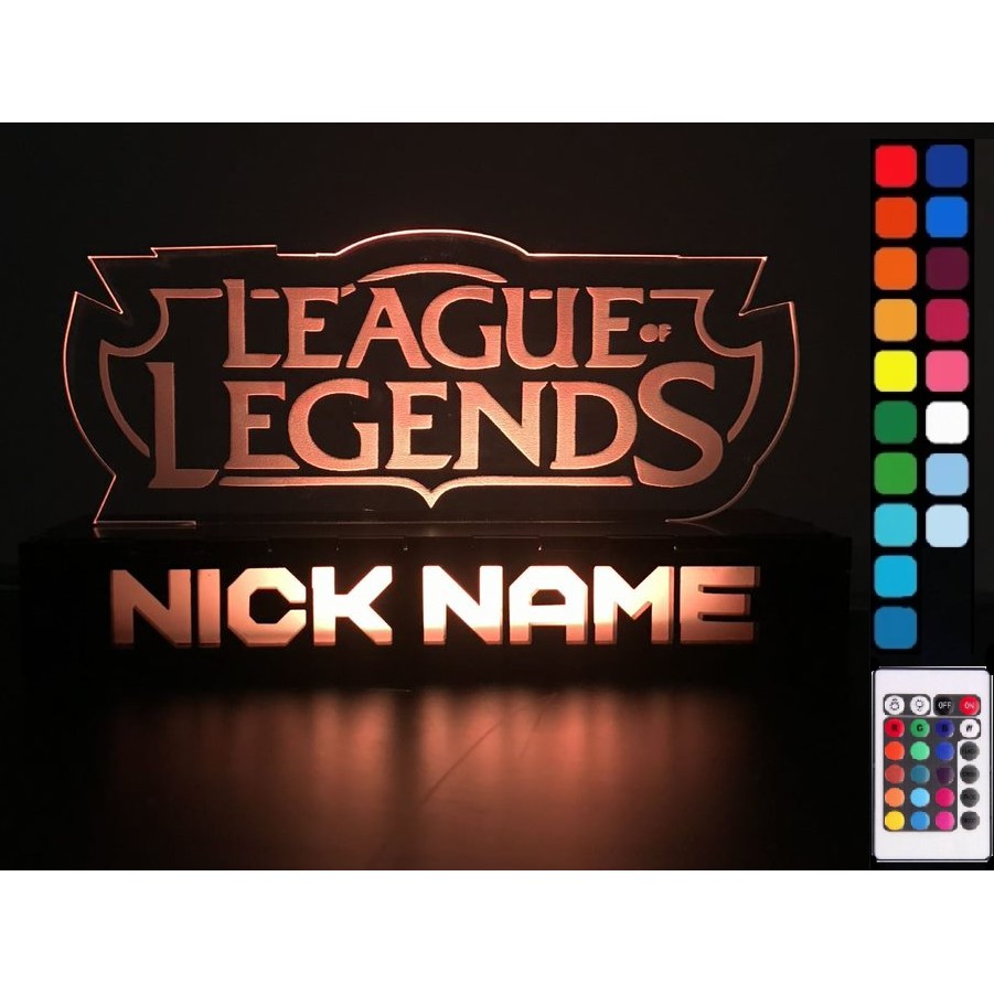 Luminária Abajur League of Legends - RGB - Personalizado Nome na Base