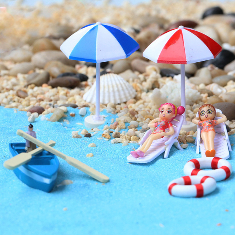 5 conjuntos de modelo de guarda-chuva de cadeira de praia em miniatura para decoração de casa de bonecas amarelo