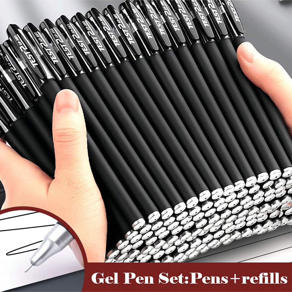 2 Caneta + 10 Refil Ballpen Set Gel Tinta Preto Cor Escritório & Escola 0.5 Milímetros Ponta Fina Recarregáveis Escrita Diária Canetas Notebook Material Escolar Papelaria