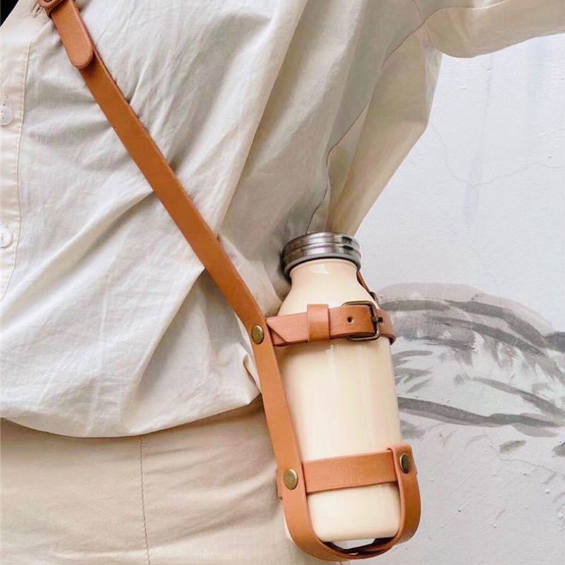 SUGAW PU Bolsa De Couro Para Garrafa De Água Aquaflask Porta-Copos Com Alça De Ombro Manga De Copo