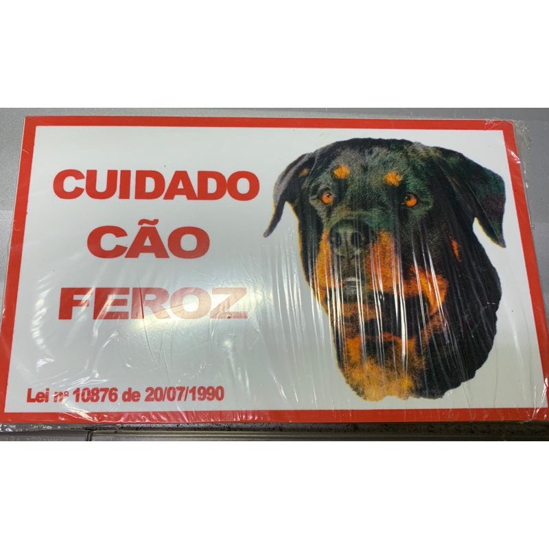 Placa Cuidado Cão Bravo Rottweiler Tamanho 20 x 30 cm Placa de Aviso