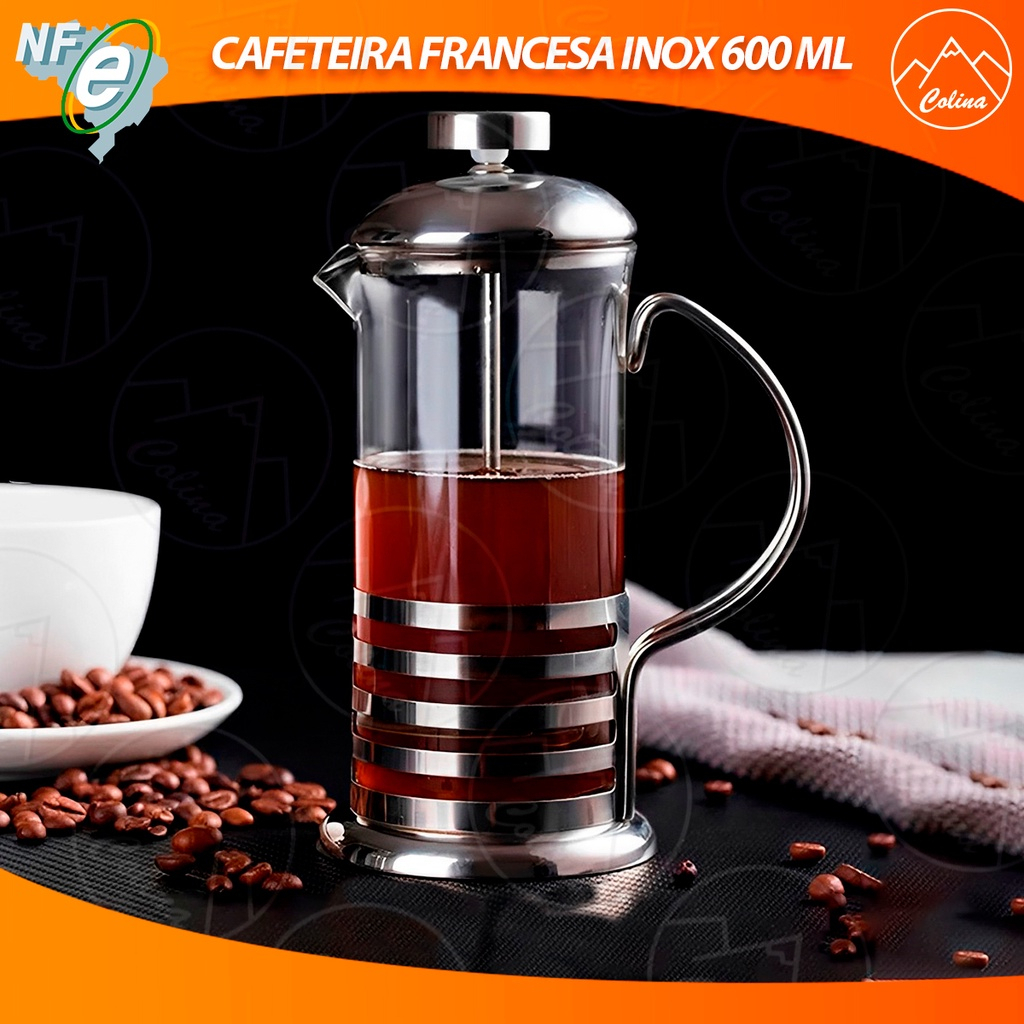 Cafeteira Prensa Francesa Cremeira Em Vidro E Aço Inox 600ml
